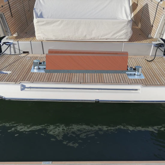 Dinghy stowage made easy with our swim platform mounted Swing-Away Bracket.